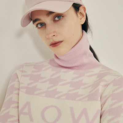 - HOUNDTOOTH CASHMERE KNIT PULLOVER _PINK